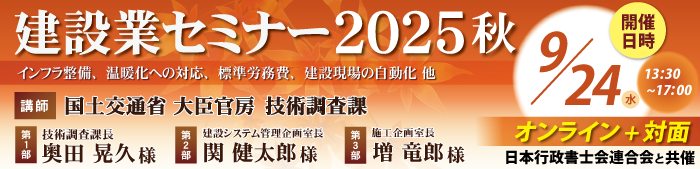 お知らせ 9月24日(水)建設業セミナー2025 秋を開催 国土交通省 奥田技術調査課長らを講師に
