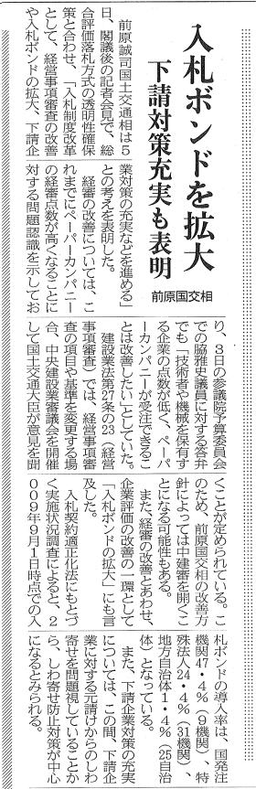 2010/03/08 入札ボンドを拡大/下請対策充実も表明/前原国交相