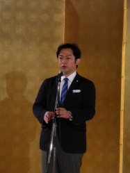 参議院議員 福岡資麿氏が挨拶に立ち祝辞を述べた。