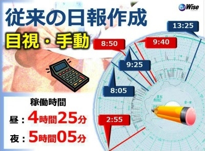 自動解析し機械運転日報を自動作成するシステム「タコグラフマネージャ」等、