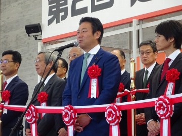 オープニングセレモニーでは、建設・測量生産性向上展実行委員会 実行委員長 谷 鉄也様、来賓代表として環境省 環境副大臣 秋元 司様、国土交通省 大臣官房技術調査課長 岡村次郎様のご挨拶と、参列者の方々によるテープカットにより開会されました。