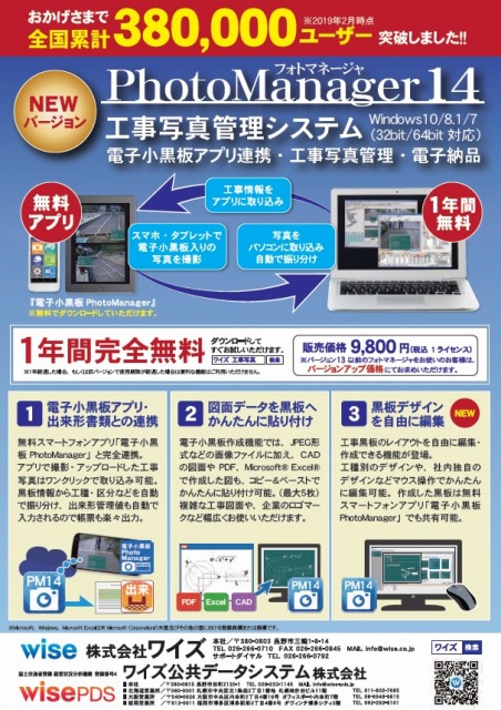 研修会の中で紹介いたしました、工事写真管理システム「PhotoManager14」は、スマートフォン・タブレット向け電子小黒板アプリ「電子小黒板 PhotoManager」(無料)と連携することで、スマートフォンで撮影された工事写真をクラウドを用いて自動連動することができます。