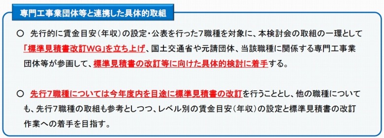 3.「標準見積書改訂WG」の立ち上げ、7職種については今年度内に標準見積書の改訂