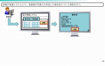 代理申請 ④委任状承認 申請者は代理人が作成した委任状を承認します。 ![]() (クリックして拡大) (※) |