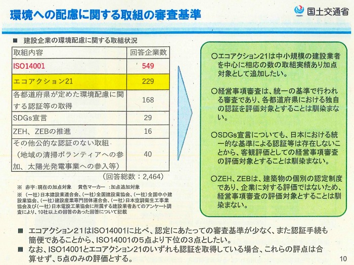 ※ISO14001・エコアクション21どちらも取得している場合は、ISO14001の5点のみを評価することを検討。