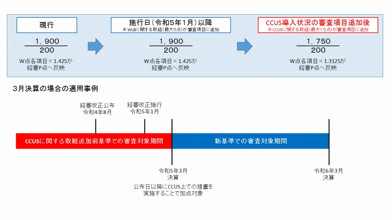 CCUSでの加点は、公布の日(令和4年8月予定)以降に開始する事業年度から審査対象の期間として運用する。