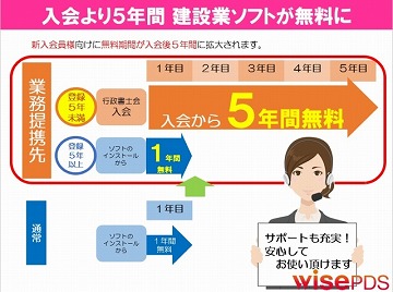 インストール後、1年間は完全無料≪提携先行政書士会々員様は加えて入会後5年間無料≫、翌年以降もワイズ公共データシステムへ年間3件以上