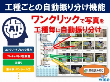 工種毎の自動振り分け、出来形書類作成までを連動して作成できる工事用写真管理システムです。