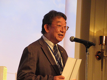 フォーラム終了後、記念式典・懇親会が開催されました。 記念式典は、(一社)全国建行協 理事 弓削和徳先生による開催宣言により始まりました。