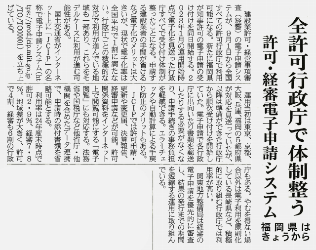 2025/9/22 全許可行政庁で体制整う 許可・経審電子申請システム