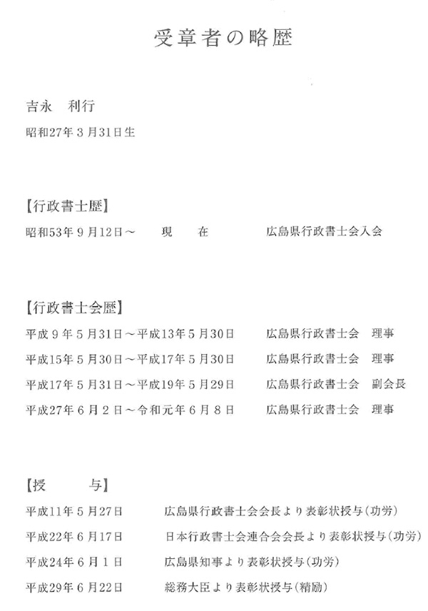 2025/09/22 吉永利行氏(広島県行政書士会)の「黄綬褒章受章を祝う会」が開催されました