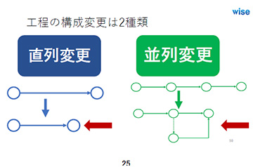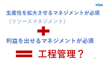 講習は2部構成で行われ、第1部では「利益が拡大する行程マネジメント」と題して、行程マネジメントの向上が必須な時代背景、行程とコストとマネジメントの相関関係、当初計画行程の工夫が利益を決める、工程計画を高い精度で実行に繋げる、リソースコントロールが高利益を生み出すの各項目について解説しました。