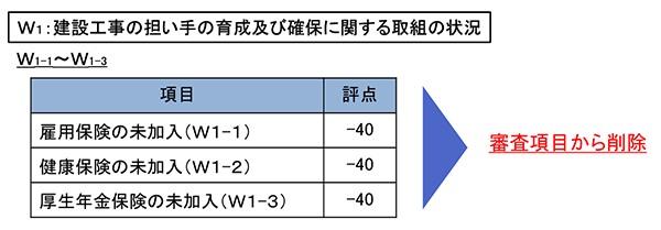 (3)「社会保険加入に関する評価項目(W1-1~W1-3)」の削除