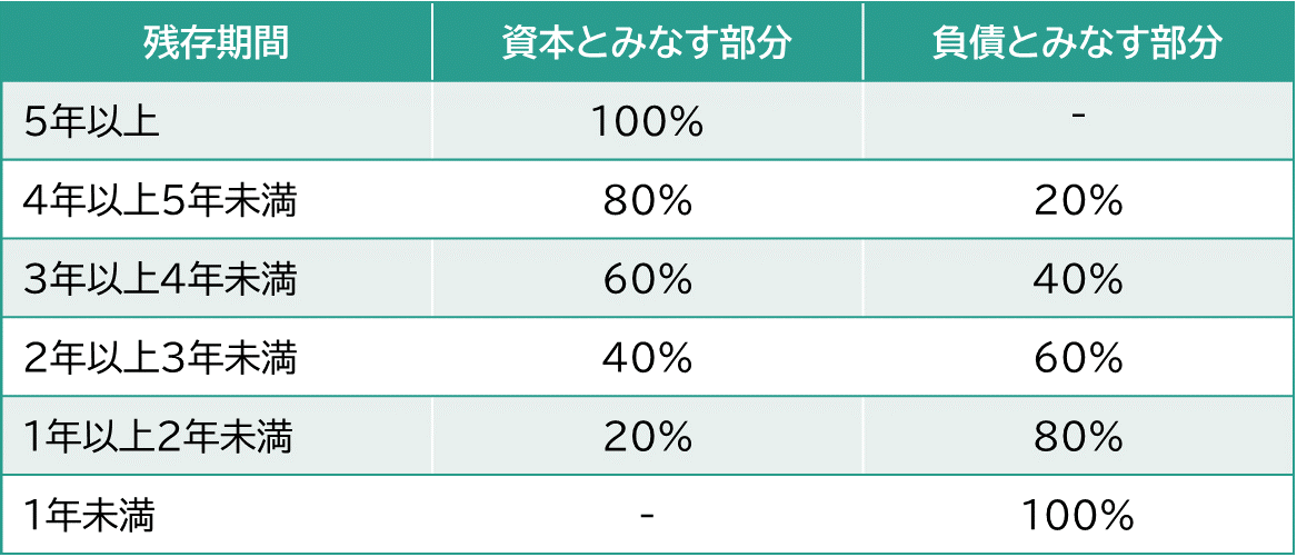 ③資本性借入金は、償還期限に応じて自己資本とみなす金額が変動します。